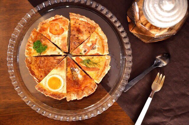 フランス生まれの惣菜ケーキであるキッシュとともにカフェインレスコーヒーをお楽しみください